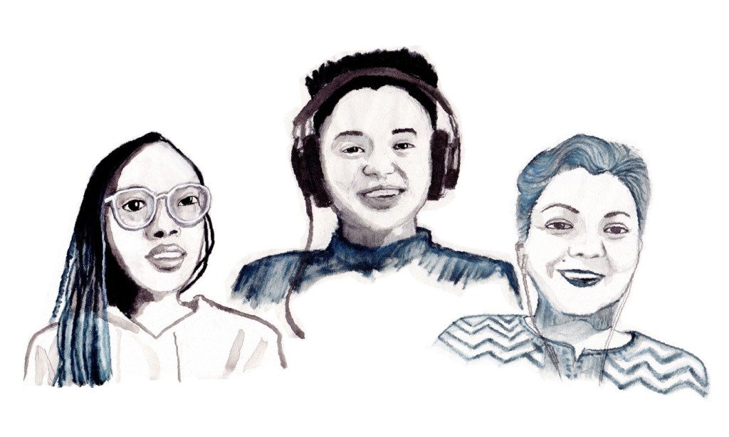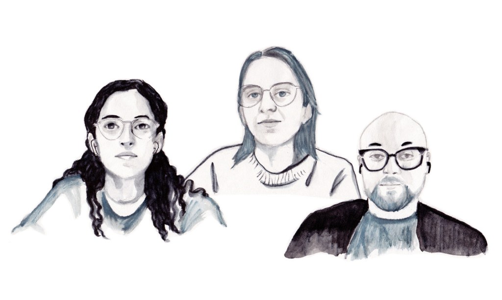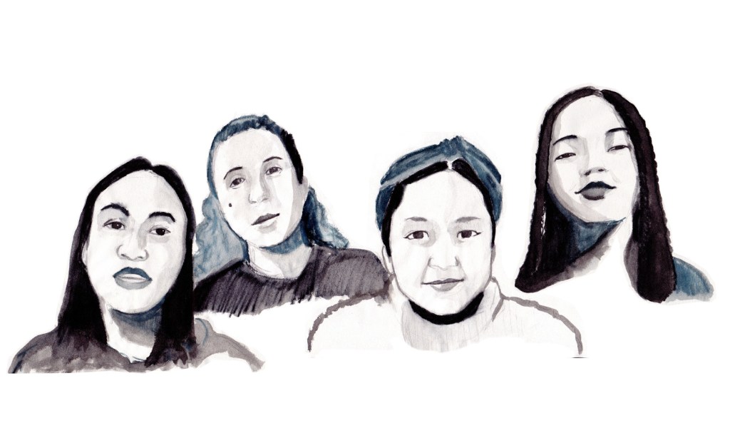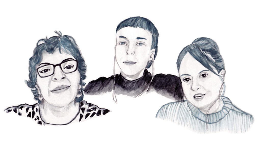 Intersectional feminist approaches Illustrations for webinar series organised by WIDE+ and FES, 2022. Pencil, watercolour and ink on paper. More information on webinars here.
