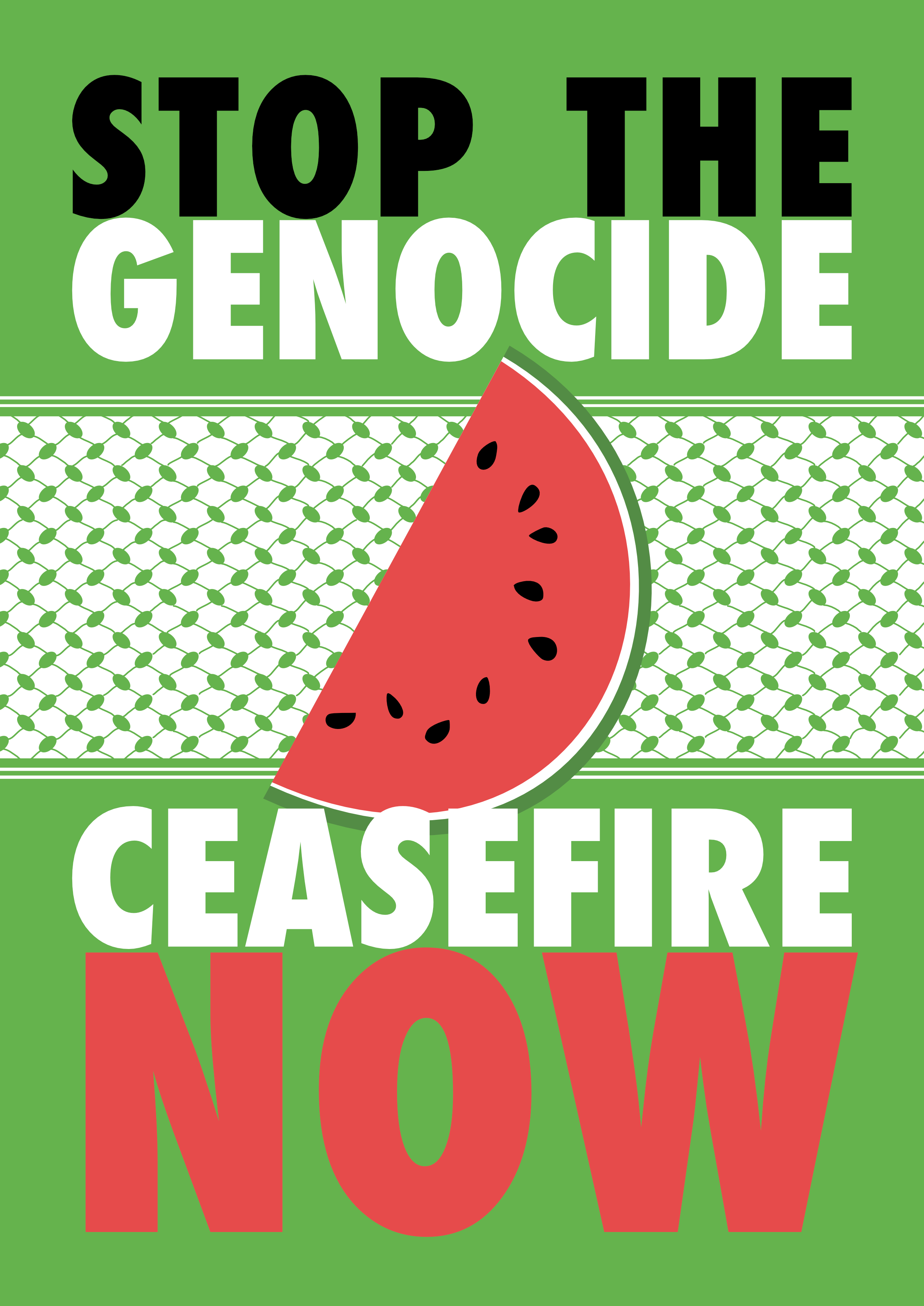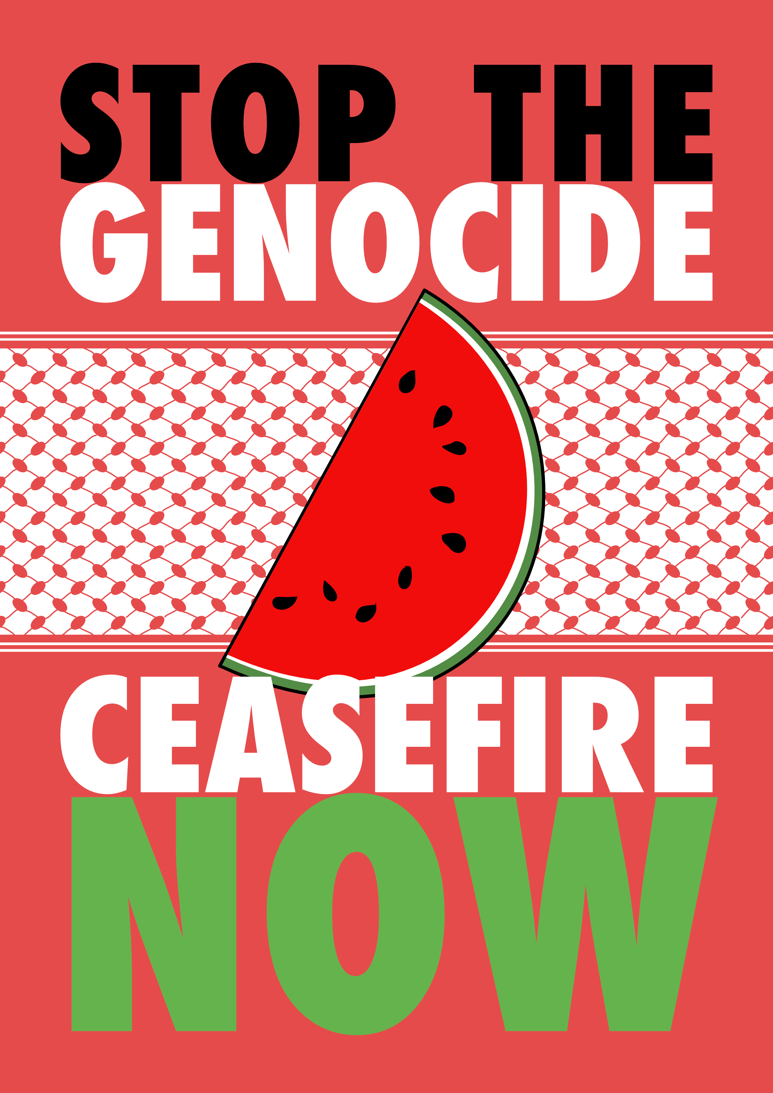 Ceasefire Now, 2023, Digital design. Free download here. You may reproduce these images but not use them for profit. If you wish to use them in any other way, you can contact me.